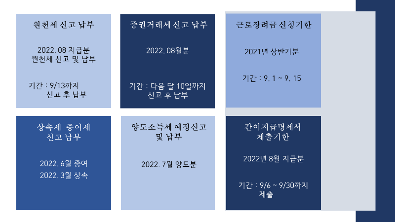 오늘은 간단하게 9월 세무 일정에 대해 알아보았는데요