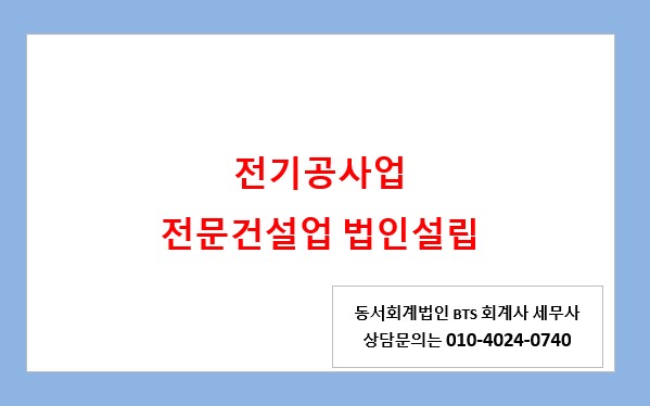 안녕하세요 이번 포스팅에는 전기공사업 등록 및 법인설립과 관련하여 포스팅을