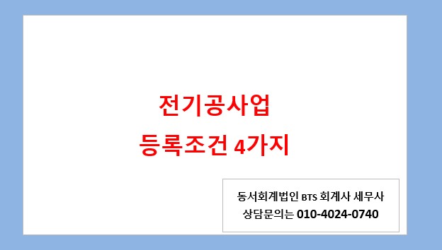 전기공사업을 법인으로 등록하기 위해서 크게 4가지 조건이 성립되어야 하는데요