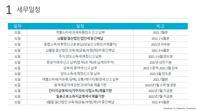 어제 끝난 원천세 신고 이후의 세무 일정은