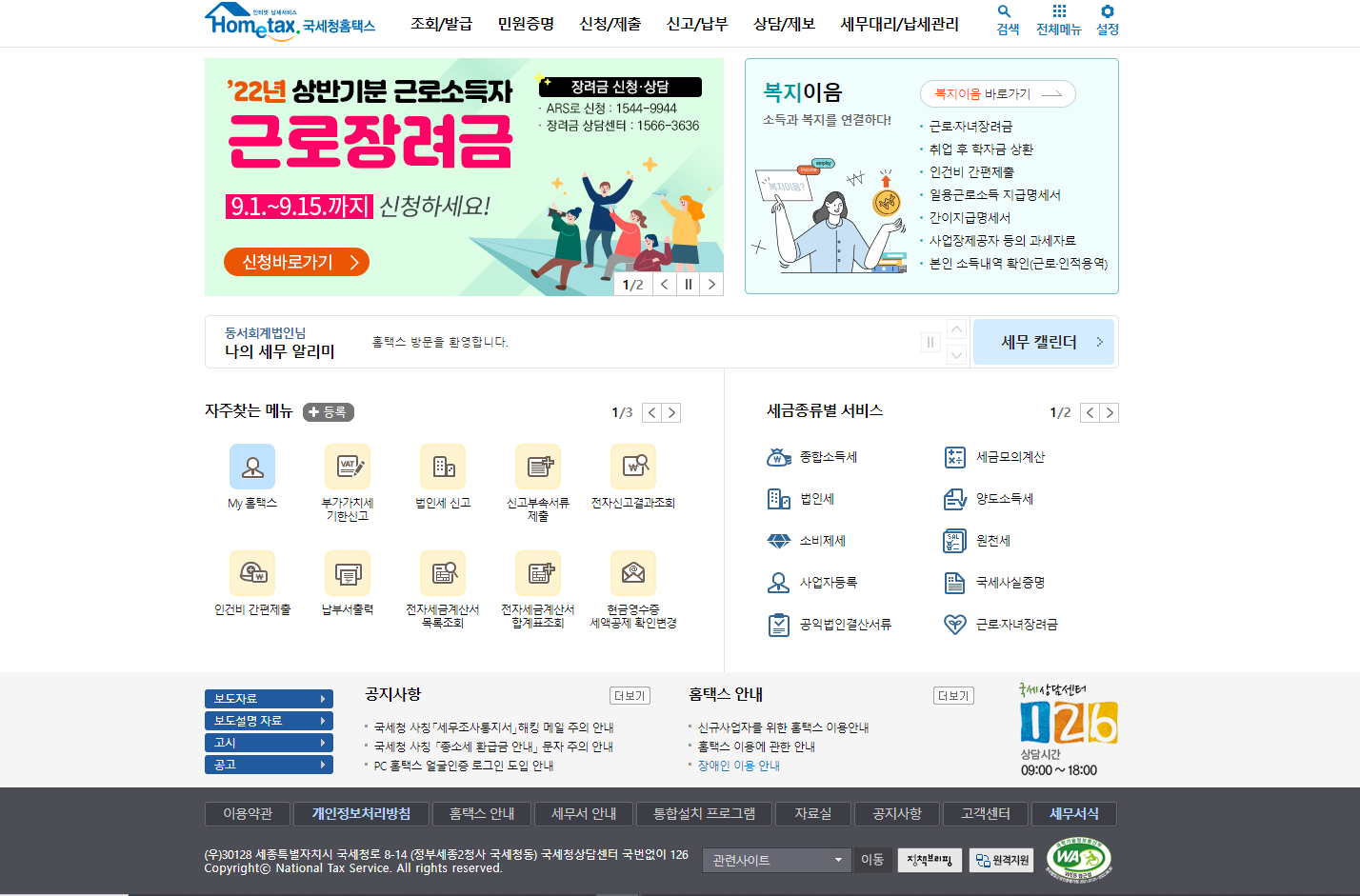 1. 우선 홈택스 홈페이지에 접속 후 로그인 합니다.