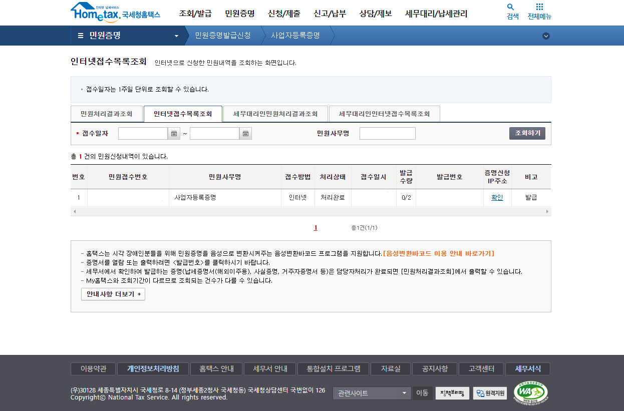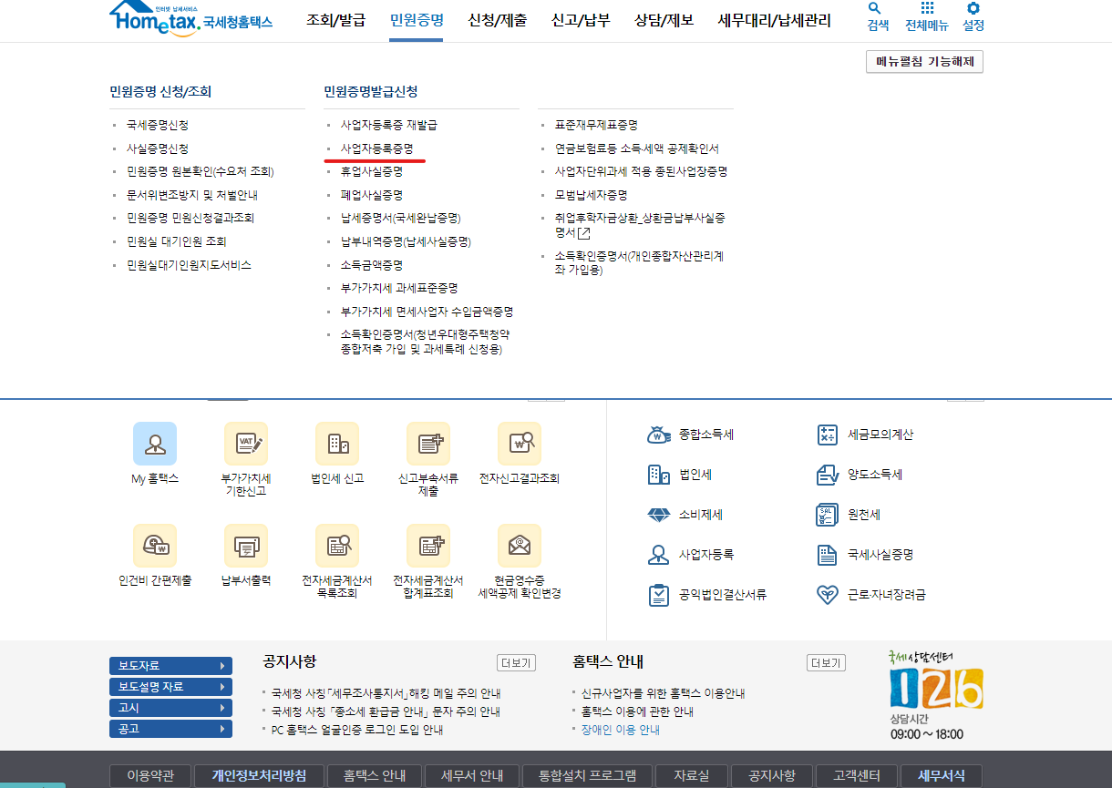 이번에는 사업자 등록증명원 발급에 대해 알아보겠습니다.