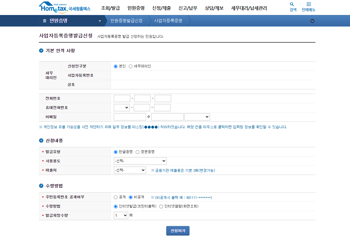 이번에는 사업자 등록증명원 발급에 대해 알아보겠습니다.