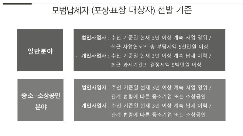 납세자의 날 수상자는 타인 추천 또는 본인 신청을 받아