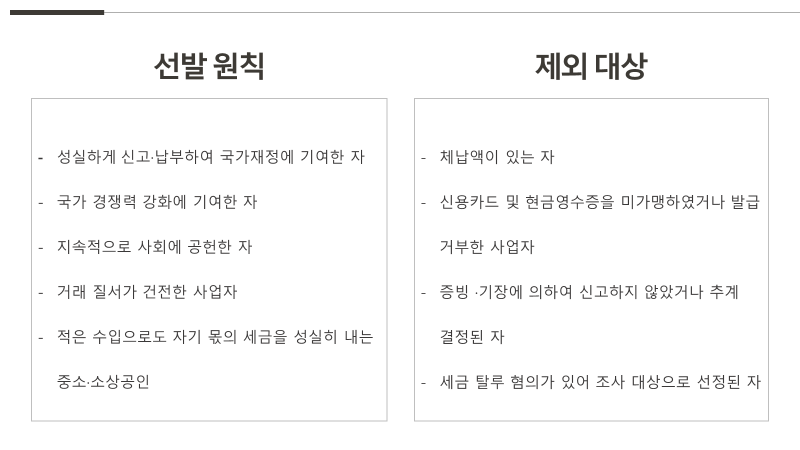 중소/소상공인 분야의 선발기준은 일반분야와 다른 점이 있다면 세액 기준이 없다는 점 참고하시면 되겠습니다.