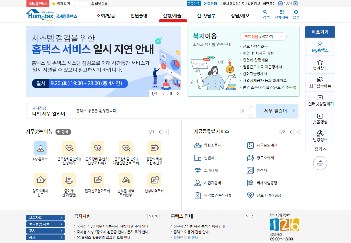 1. 먼저 홈택스 홈페이지에 들어가서 로그인 후