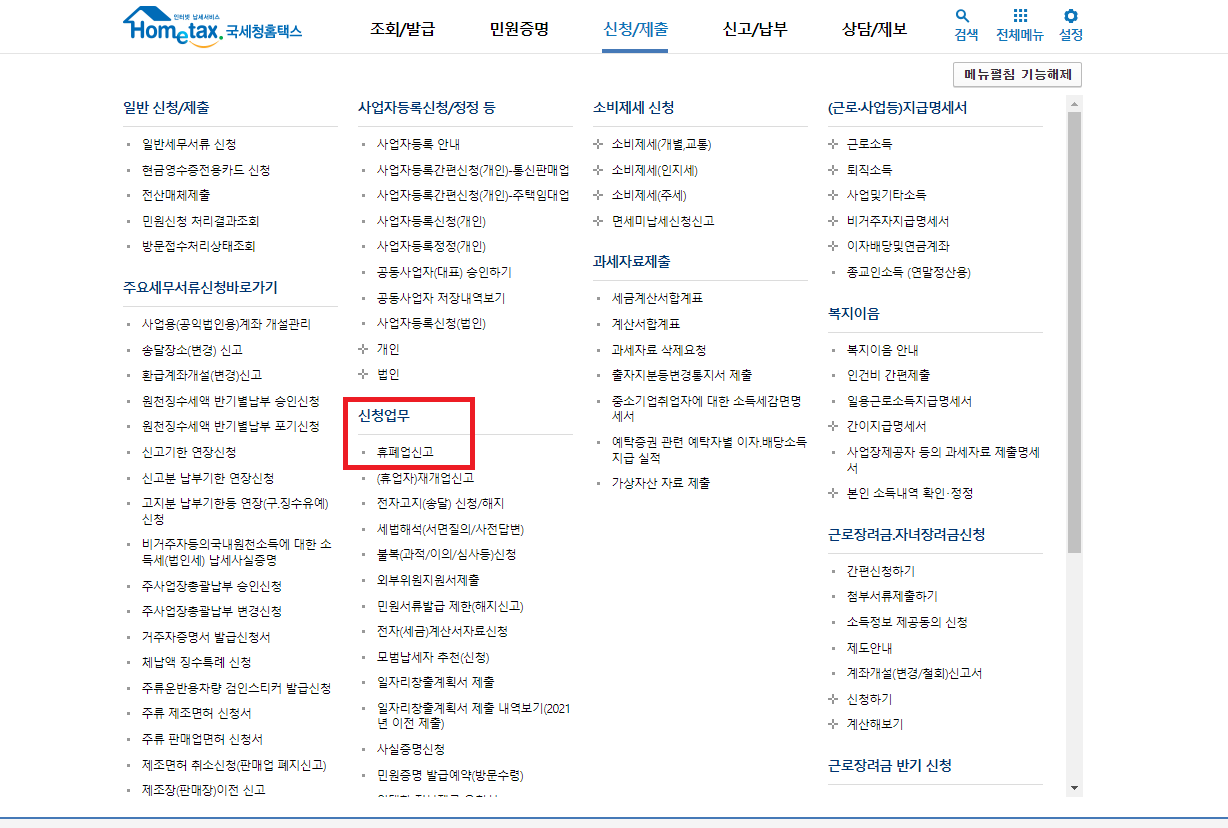 휴업의 경우 재개업을 하게 된다면 똑같이 홈택스 홈페이지에서