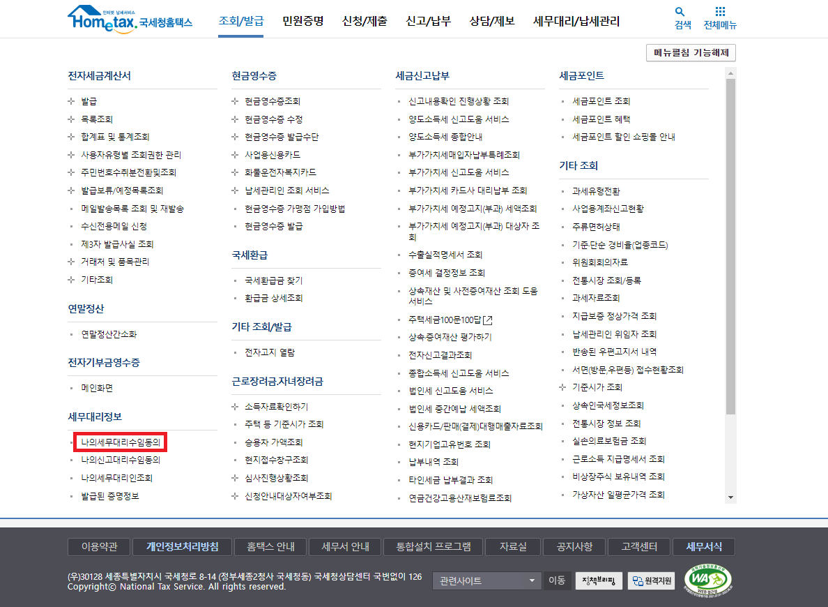 조회/발급 > 세무대리정보 > 나의세무대리인 해임에 들어갑니다