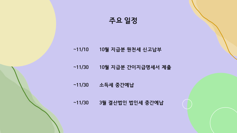 오늘은 11월 세무일정에 대해 확인해보도록 하겠습니다