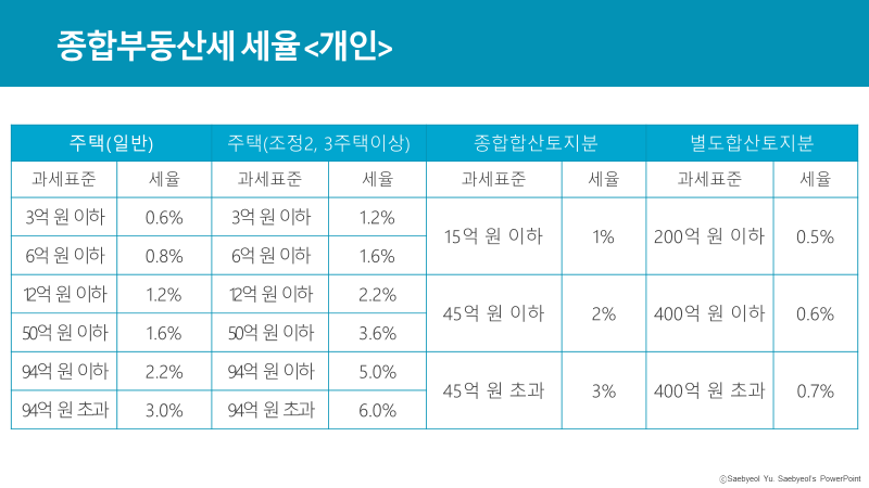 토지 종합부동산세 세율은 개인과 법인이 동일하게 적용하지만