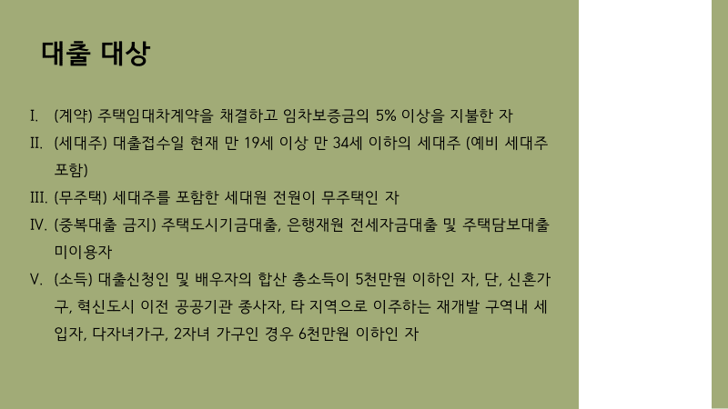 대출 대상은 위 요건과 3가지 요건까지 모두 충족해야 합니다