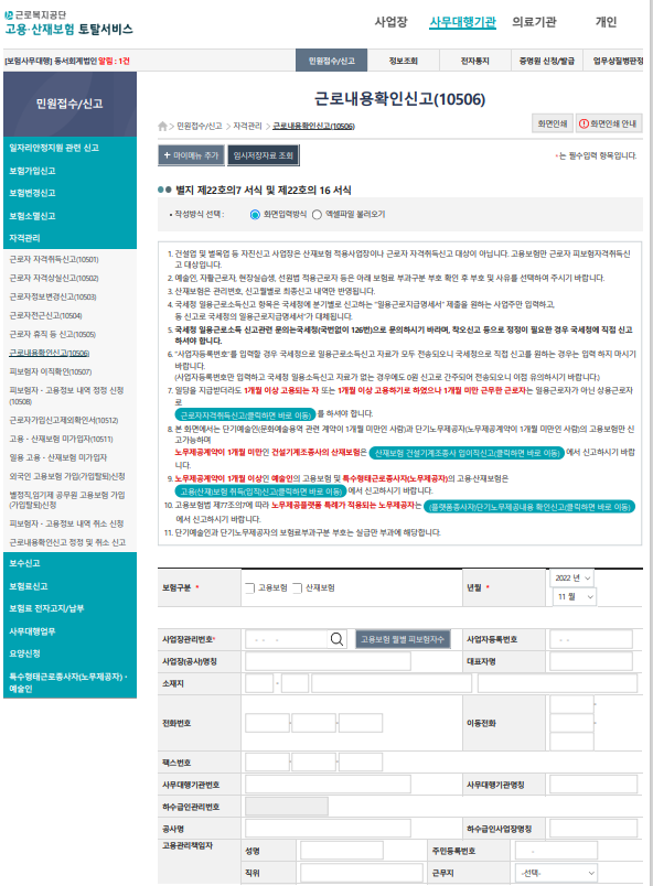 고용산재 토탈서비스 홈페이지에서 가능