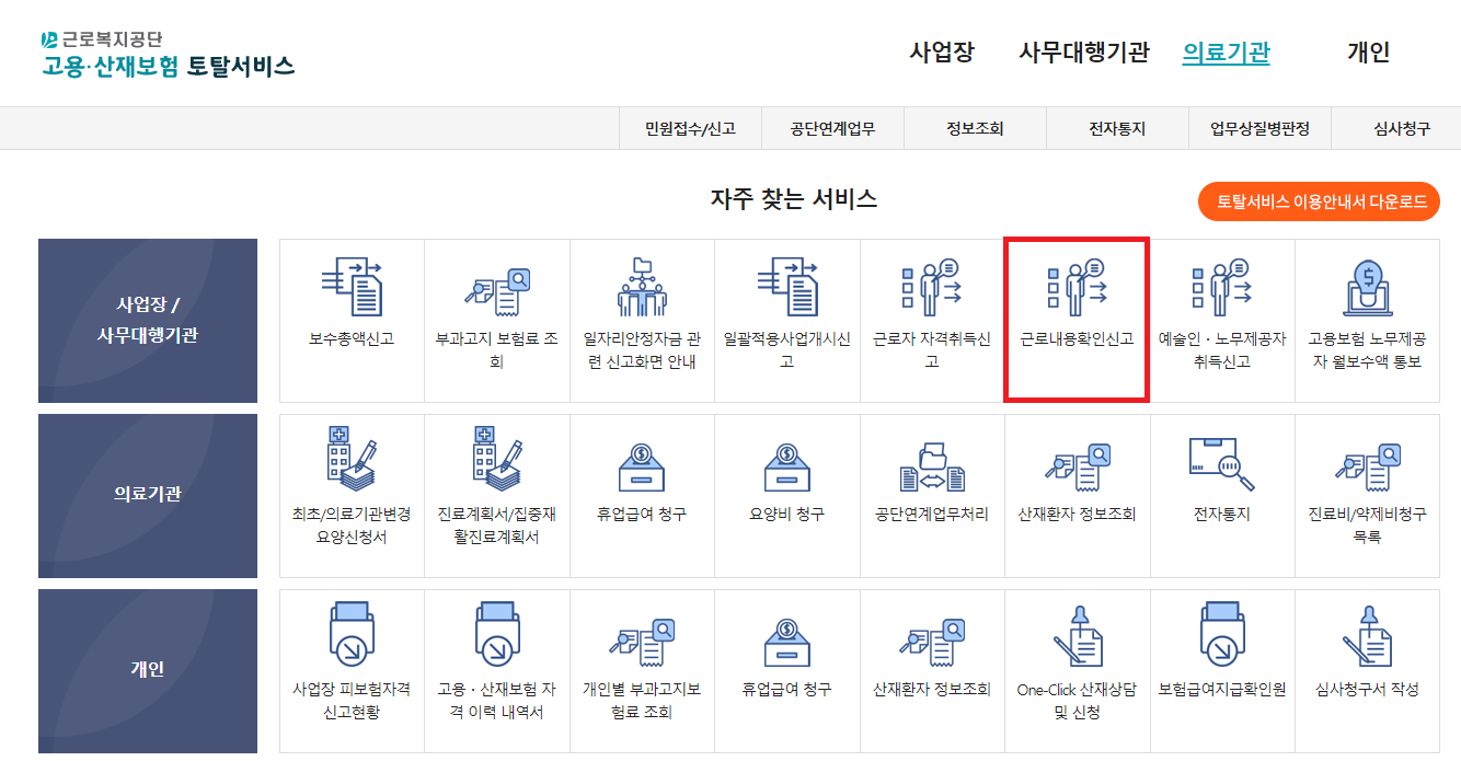 고용산재 토탈서비스 홈페이지에서 가능