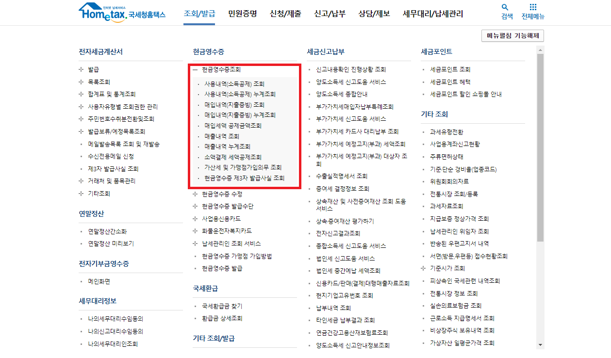 현금영수증을 발행한 후에 내역을 확인해보고 싶으시다거나