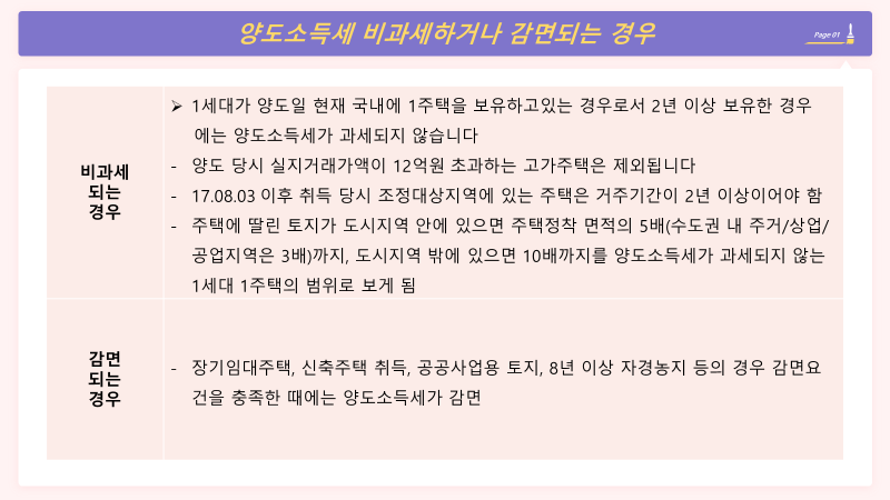 양도소득세는 조세정책적 목적으로 비과세하거나 감면되는 경우도 있으니