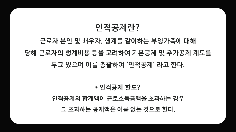 두고 있으며 이를 총괄하여 인적공제라고 합니다