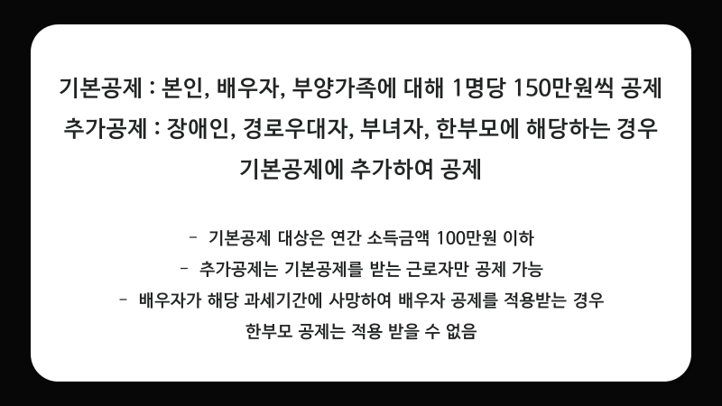 기본공제와 추가공제 이외에 유의해야할 사항도 몇 가지 있으니
