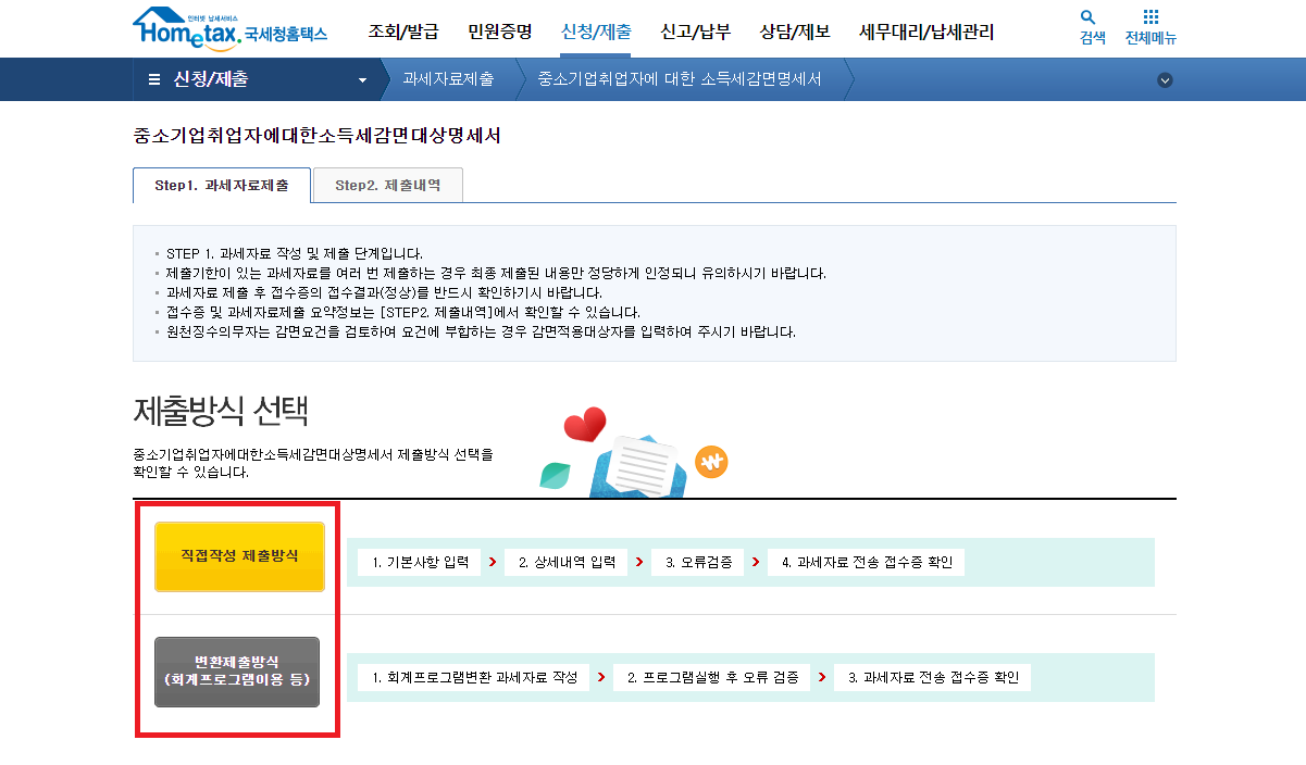 과세자료제출만 하면 되기 때문에 제출방식에 따라서 제출 후 내역을 확인 해보시면 되겠습니다