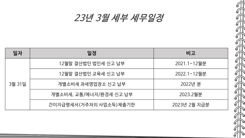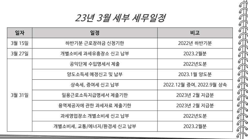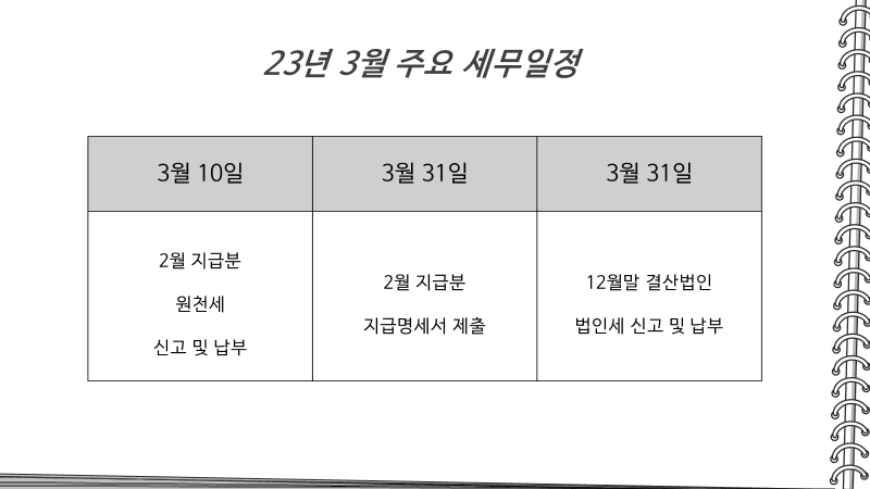 주요일정이 있는 3월 세무일정에 대해 확인해보도록 하겠습니다
