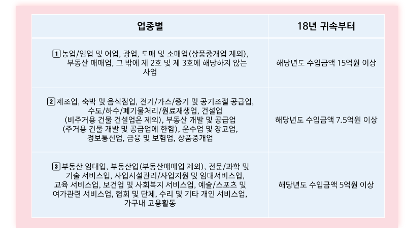 성실신고확인대상자는 위의 표를 보시고 업종별로 확인해보시면 됩니다