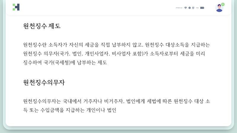 원천징수의무자가 소득자로부터 세금을 미리 징수하여 국가에 납부하는 제도입니다