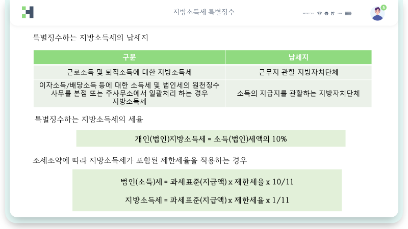 특별징수하는 지방소득세의 세율은 소득세액의 10%입니다.