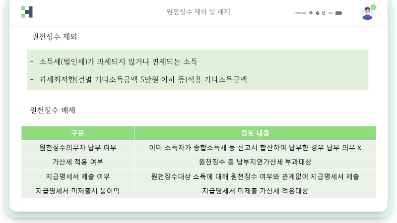 원천징수를 배제하는 경우는 원천징수대상 소득을 지급하면서 원천징수를 하지 않았으나