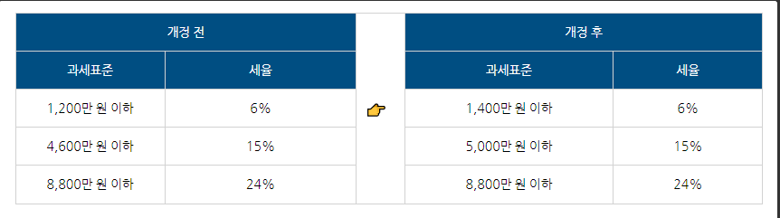 √ 일부 과세표준 구간 조정