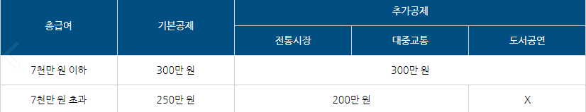 *카드공제 한도 조건은 아래 표를 참고하시면 됩니다